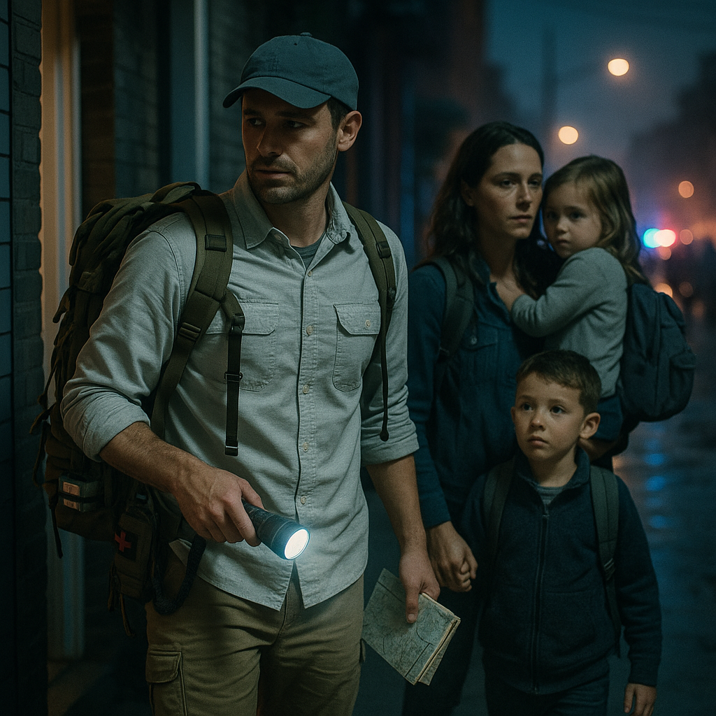 Go-bag 72h, rutas y evacuación, manejo de recursos, señales, comunicación, EDC